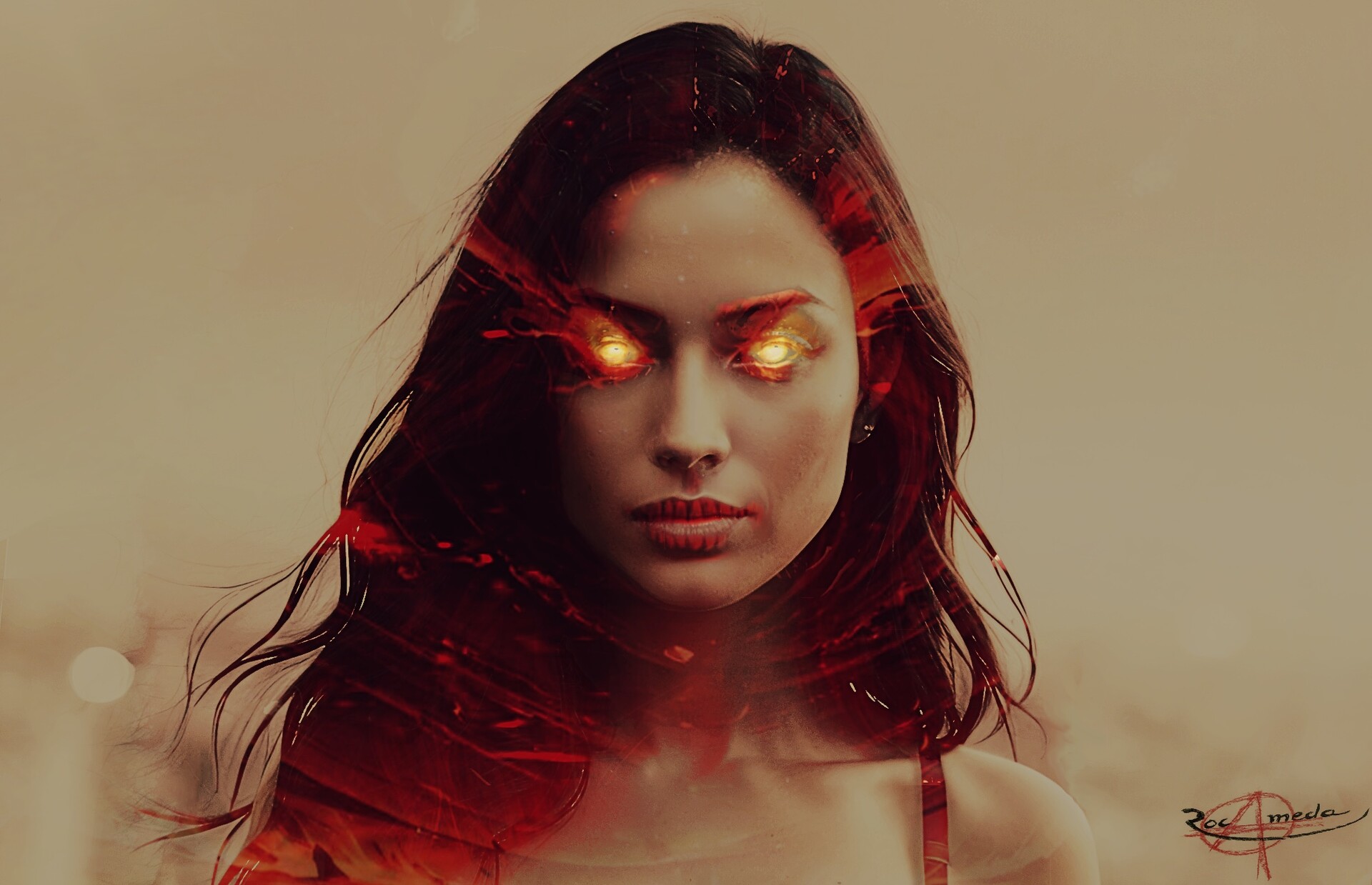 « … rendit-elle la politesse, avant de relever la voilette qui estompait jusque-là, le vide abyssalement ténébreux comblant des orbites au cœur desquelles brillaient d’inquiétantes flammèches rouges. La dame noire considéra fugitivement le champ de bataille dominé par le guerrier séraphique. Nédélitis, elle était par essence une des contreparties les plus antagoniquement démoniaques aux Morphélitis. Aussi, ne put-elle contenir un sourire glacial, tant mauvais qu’atrocement carnassier, à la vue de l’asymétrie proprement cosmique de l’affrontement qui se profilait entre son plus intime ennemi et les légions amfhaliennes de ses lointains cousins. »